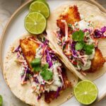 - Prepare the Cilantro Lime Slaw: While the fish cooks, combine cole slaw mix, mayonnaise, lime juice, minced garlic, chopped cilantro, sugar (if using), sea salt, and cracked pepper. Taste and adjust seasoning or lime juice as needed.