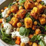 - Assemble bowls: Place cooked quinoa as the base in each serving bowl. Layer roasted sweet potatoes and crispy chickpeas on top. Add fresh baby spinach leaves and sliced avocado. Drizzle generously with tahini yogurt dressing before serving.