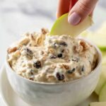 A deliciously creamy Apple Toffee Dip combining smooth cream cheese, sweet brown sugar, crunchy Heath toffee bits, and mini chocolate chips, perfect for dipping fresh apple slices.