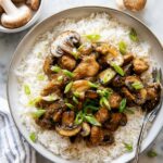 For special dinners, I like serving the Black Pepper Mushroom Chicken Stir Fry family style in a big shallow bowl so everyone can serve themselves, garnished with lots of green onions and colorful bell pepper strips. It honestly feels a little festive and definitely elevates this humble dish.