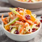 A refreshing and vibrant Carrot Apple Salad featuring crisp matchstick carrots, two types of apples, dried cranberries, and mandarin segments tossed in a creamy vanilla yogurt and mayo dressing. Perfectly balanced with a hint of lemon juice and a touch of sweetness.