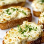 Artichoke Bruschetta is a creamy and flavorful appetizer made with a blend of cream cheese, mayonnaise, artichoke hearts, Parmesan, and mozzarella cheese, served on toasted French baguette slices. It is easy to prepare and perfect for entertaining, featuring a bubbly, golden-browned topping that pairs beautifully with fresh parsley or paprika garnish.