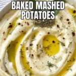 This Cheesy Baked Mashed Potatoes recipe is a comforting and creamy side dish made with Yukon gold potatoes, garlic, and a blend of butter, sour cream, and mozzarella cheese. Baked until tender and then mashed to a smooth consistency, it’s perfect for family dinners or holiday meals.