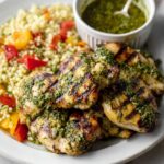 This Chimichurri Grilled Chicken with Couscous Salad is a vibrant and flavorful dish featuring tender marinated chicken thighs grilled to perfection and served alongside a fresh couscous salad tossed with tangy chimichurri, cherry tomatoes, feta, and chives. Perfect for a healthy, easy dinner with a refreshing South American twist.