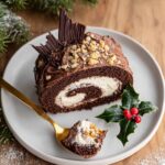 This Chocolate Hazelnut Bûche de Noël is a festive and elegant Yule log dessert featuring a light chocolate sponge cake rolled with rich chocolate hazelnut spread and whipped cream. Decorated with chocolate shards and toasted hazelnuts, it’s a perfect centerpiece for holiday celebrations.
