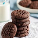 Delicious Chocolate Peanut Butter Cookies combining rich cocoa and creamy peanut butter for a soft, chewy treat with a perfect crisscross pattern on top.