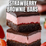 Decadent chocolate covered strawberry brownies featuring a rich, fudgy brownie base topped with a creamy strawberry frosting made from freeze-dried strawberries and finished with a glossy chocolate ganache. Perfect for chocolate and fruit lovers looking for an elegant yet easy dessert.