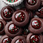 These Chocolate Thumbprint Cookies are rich and fudgy with a soft texture and a decadent chocolate ganache filling. The cocoa and semi-sweet chocolate chips create an indulgent treat perfect for any chocolate lover. The cookies have a perfect balance of sweetness with a slightly crisp edge and a luscious ganache center.