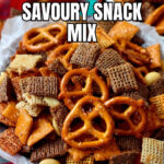 - Serve and Store: Serve the savoury snack mix warm or at room temperature. To store, allow the mix to cool completely, then transfer to a resealable bag and keep at room temperature for freshness.