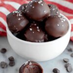 Roll the chilled truffles into smooth balls and use a fork to dip each one into the melted chocolate. Let the excess drip off by tapping the fork against the bowl’s edge before placing truffles back on parchment. This is when I sprinkle flaky sea salt on some—chocolate and salt are a match made in heaven! Let them chill in the freezer again for about 5 minutes until the chocolate sets hard. Then, dig in or store away for later.