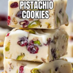 I love scattering fresh cranberries and a few extra chopped pistachios on the serving platter alongside the cookies. Not only does it look festive and colorful, but it also hints at the delicious flavors inside. Sometimes I lightly dust the cookies with powdered sugar to make them feel even more special — especially for holiday parties!