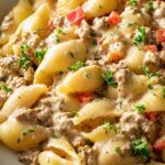 This Creamy Beef and Shells recipe combines tender pasta shells with savory ground beef and a rich, cheesy sauce for a comforting and delicious meal perfect for family dinners.