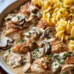This Chicken Mushroom Stroganoff is a creamy, flavorful dish featuring tender chicken pieces sautéed with mushrooms and onions in a rich sour cream sauce. Enhanced with Dijon mustard and Worcestershire sauce, it’s a comforting main course perfect for a quick weeknight dinner.