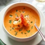 A rich and creamy Lobster Bisque recipe featuring tender lobster meat simmered in a flavorful lobster stock with aromatic vegetables, spices, and finished with heavy cream and butter for a luxurious soup experience.