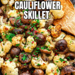 A flavorful and easy Mushroom Cauliflower Skillet recipe featuring cremini mushrooms and cauliflower florets cooked with garlic, onion, and Italian seasoning for a delicious low-carb side dish or light main course.
