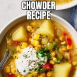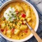 A creamy and comforting corn chowder made with fresh sweet corn, Yukon Gold potatoes, and a blend of aromatic spices. This recipe features a vegan option using cashews for creaminess, with the option to add sour cream for extra richness. Perfect for a hearty and flavorful meal.