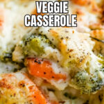 A creamy vegetable casserole featuring tender broccoli, cauliflower, and baby carrots smothered in a rich Italian cheese sauce and topped with crunchy pork rind panko crumbs, baked to perfection for a comforting and flavorful side dish.