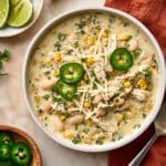 This Creamy White Chicken Chili is a comforting and flavorful dish featuring tender chicken thighs, white beans, and a blend of spices. Cooked on the stovetop and enriched with cream cheese and sour cream, it offers a rich, creamy texture balanced by a mild, yet zesty heat. Perfect for cozy dinners, it can be customized with your favorite toppings for an extra burst of flavor.
