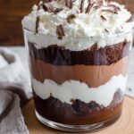 A decadent and layered Brownie Trifle featuring rich chocolate brownies, creamy chocolate pudding, and fluffy homemade whipped cream, garnished with chocolate shavings. Perfect for a crowd-pleasing dessert that can be prepared ahead and assembled easily.