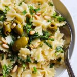 One of my favorite things about this Dirty Martini Pasta Salad Recipe is how easy it is to put your own spin on it. I often swap the pine nuts for toasted walnuts, or add a little chili for some heat. Feel free to experiment based on your mood or what you’ve got in the kitchen.