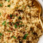A simple and flavorful 5-ingredient garlic butter quinoa recipe that cooks quickly and makes a perfect side dish. Made with quinoa, vegan butter, garlic powder, sea salt, and vegetable broth, this dish is easy to prepare and ideal for a wholesome meal.
