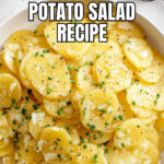 This Easy German Potato Salad is a classic side dish featuring tender sliced potatoes tossed with a tangy dressing of apple cider vinegar, vegetable oil, and finely diced onions. Simple to prepare and perfect for any occasion, this warm potato salad is garnished with minced chives for an added pop of fresh flavor.