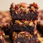These best gooey pecan pie brownies combine fudgy dark chocolate brownies with a rich, caramel-like pecan pie topping for a decadent dessert perfect for any occasion.