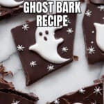 This Halloween 3 Ingredient Ghost Bark recipe is a fun, easy, and festive treat perfect for celebrating the spooky season. Made with just semi-sweet chocolate, white chocolate, and Halloween sprinkles, this no-bake bark is simple to prepare and decorated to look like adorable ghost shapes with chocolate eyes and a mouth.