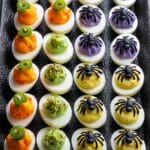 These Halloween Deviled Eggs are a festive and fun appetizer perfect for spooky celebrations. Featuring four creative varieties—eyeball, pumpkin, spooky green, and spider—each egg is decorated with vibrant food coloring and garnishes to delight guests of all ages.