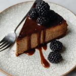 This Hojicha Basque Cheesecake offers a rich and creamy texture infused with fragrant hojicha tea flavors. Featuring a caramelized top and served with fresh blackberries and hojicha caramel, this unique dessert combines Japanese tea culture with classic Basque cheesecake decadence.