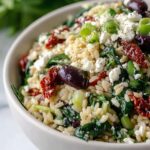 This Homemade Orzo Pasta Salad with Feta and Sun Dried Tomatoes is a refreshing Mediterranean-inspired dish featuring tender orzo pasta tossed with kalamata olives, sun-dried tomatoes, fresh herbs, spinach, and tangy feta cheese. Dressed with lemon juice, olive oil, and fragrant lemon zest, it’s perfect served chilled or at room temperature as a vibrant side or light main course.