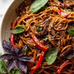 A quick and flavorful 20-minute Korean Beef Sesame Noodles recipe featuring tender flank steak, brown rice noodles, and a spicy-sweet gochujang sauce, perfect for a delicious and easy weeknight meal.