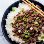 - Assemble and garnish: Serve the savory ground beef mixture over 2 cups of hot cooked white or brown rice. Garnish each serving with sliced green onions and sesame seeds for added flavor and texture.