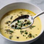 A bright and tangy Lemon Caper Sauce featuring butter, fresh lemon juice, and capers, perfect for drizzling over seafood, chicken, or potatoes to add a burst of flavor.