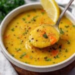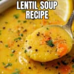 A vibrant and nourishing Lemon Lentil Soup featuring tender red lentils simmered with aromatic spices, fresh vegetables, and brightened with fresh lemon juice and zest. This comforting soup is perfect for a wholesome lunch or light dinner and can be customized with greens like spinach or kale for added nutrition.