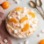 A light and refreshing Mandarin Orange Salad combining creamy Cool Whip and sour cream with citrusy orange gelatin, mandarin oranges, and sweet mini marshmallows for a delightful side dish or dessert.