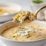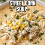 A flavorful and creamy Mexican Street Corn Soup that features fire-roasted corn, tender chicken, and a blend of bold spices, finished with fresh lime juice, cheese, and cilantro for a vibrant, comforting meal.
