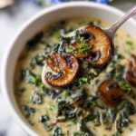 A comforting and flavorful Wild Mushroom, Caramelized Onion, and Kale Soup that combines rich caramelized onions, an earthy blend of shiitake and cremini mushrooms, tender kale, and creamy coconut milk for a wholesome and satisfying dish perfect for any season.