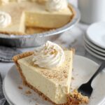 A creamy and festive No Bake Eggnog Pie made with a graham cracker crust, eggnog, vanilla instant pudding, and whipped cream, flavored with nutmeg for a perfect holiday dessert.
