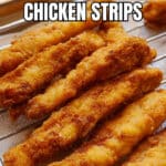 Reheat the strips in the oven or air fryer at 350° for about 10 minutes. This method keeps the coating crispier than microwaving, which tends to make them chewy or soggy. Keep an eye on them so they don’t overcook and become dry.