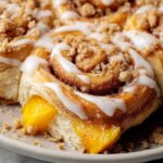 Delight in these Peach Cobbler Cinnamon Rolls featuring a soft, yeast-risen dough filled with sweet cinnamon-spiced peaches and topped with a creamy vanilla cream cheese frosting. Perfect for breakfast or brunch, these rolls combine the comforting flavors of classic cinnamon rolls with fruity peach cobbler notes in a warm, baked treat.