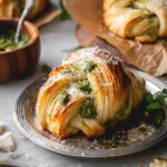 Pesto Star Bread is a visually stunning and deliciously flavored bread featuring layers of fluffy dough filled with vibrant pesto and Parmesan cheese. This recipe yields a beautifully twisted star-shaped bread perfect for serving warm alongside marinara or your favorite dipping oil. The bread is soft and tender with a golden crust, making it an impressive centerpiece for gatherings or a tasty treat.