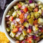 This Pickle de Gallo is a tangy, refreshing twist on traditional salsa, featuring diced dill pickles, cucumber, Roma tomato, red onion, and jalapeno. Enhanced with garlic powder, dried dill, and pickle juice, it’s perfect for serving with tortilla chips or as a flavorful addition to fajitas.