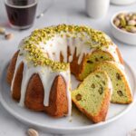- Prepare Glaze and Garnish: In a small bowl, whisk together the powdered sugar, vanilla extract, and 1 to 2 tablespoons of milk until smooth and pourable. Drizzle the glaze over the cooled cake and sprinkle additional chopped pistachios on top for garnish.