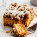 This Pumpkin Crumb Coffee Cake is a moist and flavorful treat perfect for fall. Featuring a tender pumpkin-spiced cake topped with a buttery cinnamon crumb topping and finished with a luscious vanilla icing drizzle, it’s ideal for breakfast, brunch, or dessert.