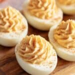 I don’t recommend it because pie filling contains added sugars and spices that could overpower the delicate balance in the devilled eggs. Stick with plain pumpkin puree for the best flavor control.