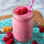 A delicious and creamy Raspberry Peanut Butter Smoothie blending frozen raspberries, banana, peanut butter, and Greek yogurt for a nutritious and filling treat perfect for breakfast or a snack.