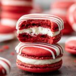 These Red Velvet Macarons are delicate French cookies with a rich red cocoa-flavored shell and creamy cream cheese frosting filling. Perfectly smooth and soft inside with a slight crisp exterior, they make an elegant dessert or special treat. The recipe includes tips on aging egg whites for optimal meringue and suggests a 24-hour maturation for the best flavor and texture.