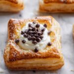 Delight in these Ricotta Chocolate Chip Pastry Squares offering a flaky puff pastry base topped with creamy ricotta cheese and sweet chocolate chips, finished with a sprinkle of coarse sugar for crunch. Perfect for breakfast, dessert, or an indulgent snack.