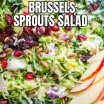 A refreshing and vibrant Shaved Brussels Sprout Salad featuring crunchy Brussels sprouts, kale, dried cranberries, apple slices, and pomegranate seeds tossed in a creamy maple Dijon vinaigrette. Perfect as a healthy side or light lunch.